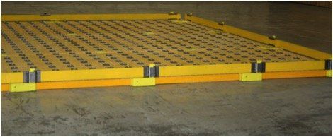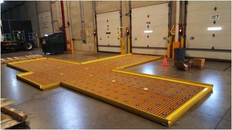 Temporary fiberglass systems can be elevated or placed directly onto the floor (system height limitations may vary depending on handling weights). These systems can be modified to each customer’s specifications. Customer modifications can be made on site at any time. Temporary systems are not to exceed handling weights greater than 15,000 lbs without the addition of a structural subframe and/or proper sideguide anchoring. We welcome you to try a temporary fiberglass system today.